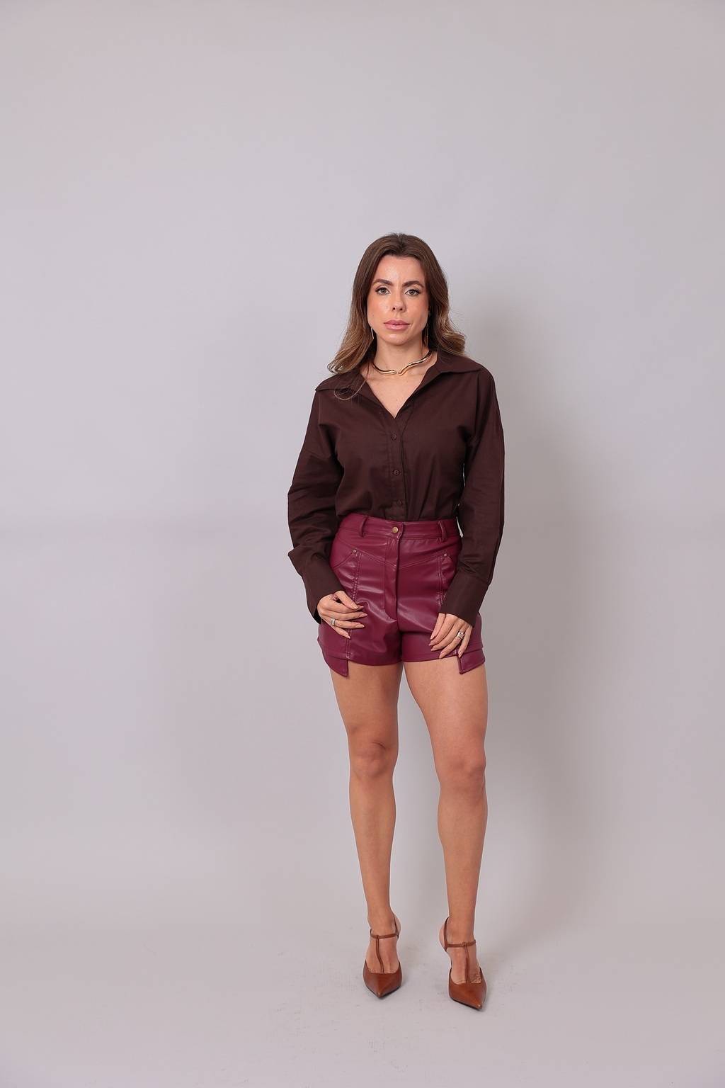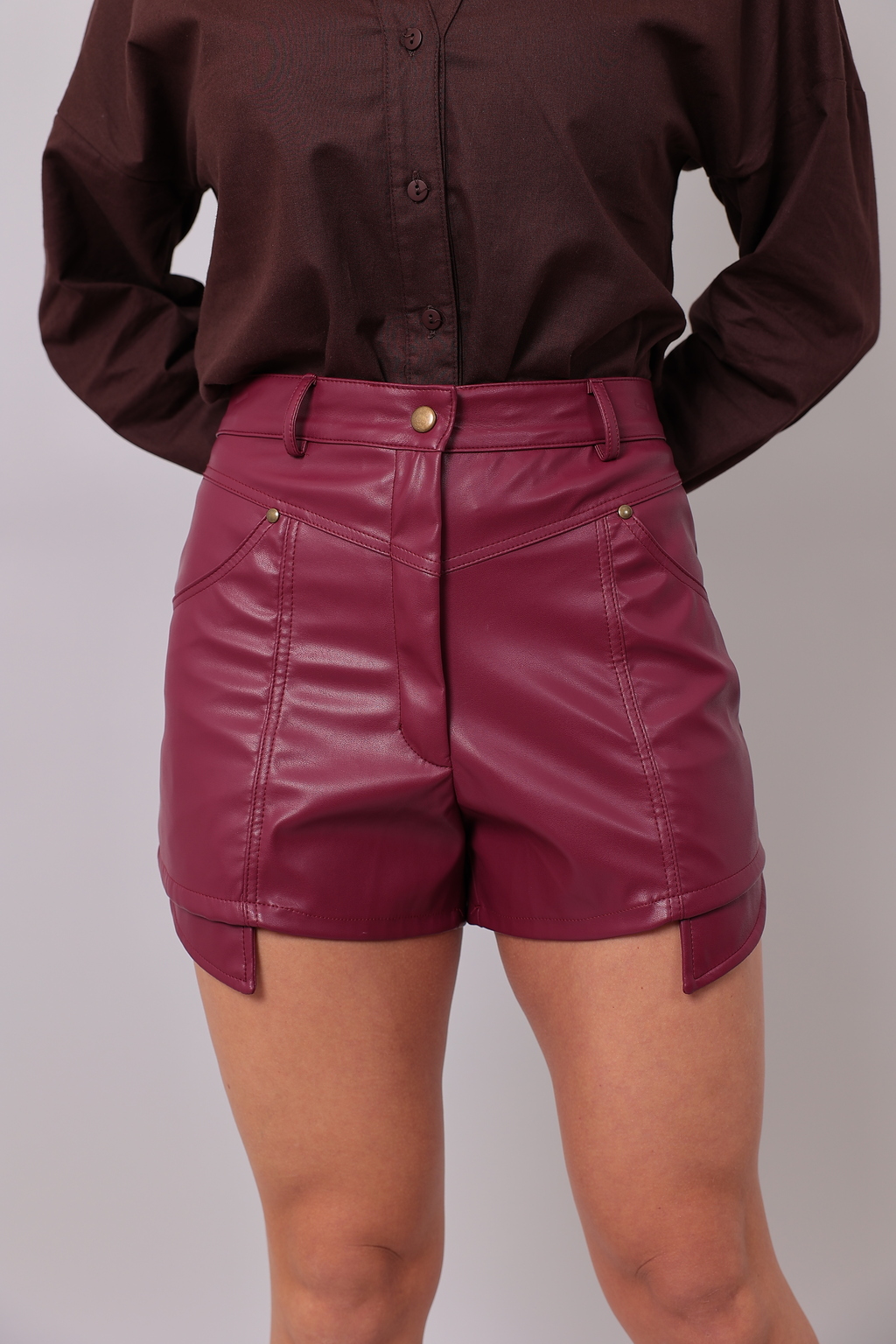 O Shorts Sofia em courino bordô é a peça que faltava para quem deseja expressar sua personalidade com um toque fashionista. Com sua cor intensa e marcante, este shorts se destaca e harmoniza perfeitamente com tons neutros, terrosos ou até mesmo estampas ousadas, permitindo a criação de looks elegantes e cheios de estilo.